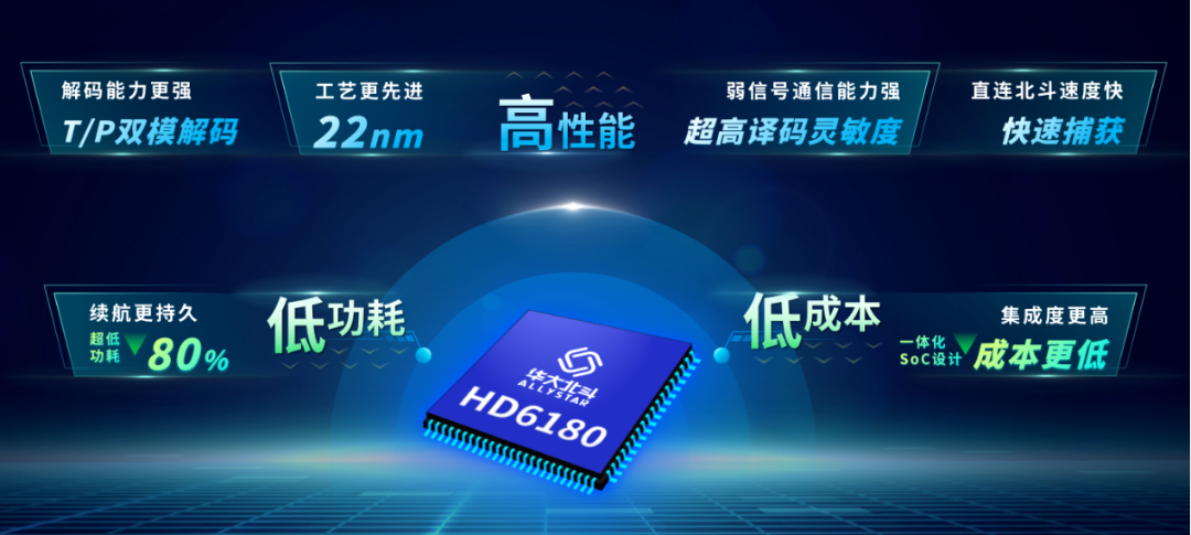 华大北斗在卫星通信领域实现“消费级突破”,发布北斗三号短报文通信SoC芯片HD6180,采用22纳米工艺与RDSS射频收发一体化架构,在性能与功耗上实现双重跨越:译码灵敏度提升至-130dBm,确保深山、海洋等弱信号环境下的通信稳定;首次卫星捕获时间缩短至2秒内,满足应急场景的快速响应需求;工作功耗降至22mW以下,较行业主流产品降幅超80%,领先同业水平。